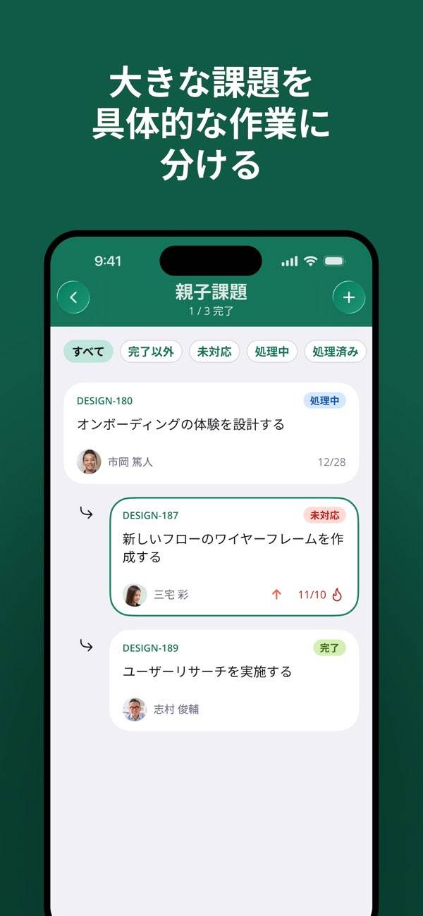 タスクに優先度や期限を決めて、スムーズな管理が可能です。自分のタスクは重要度順に整理されたリストで確認できます。サムネイルで期日も見られるので、同じ優先度でも着手する順番を厳密に決められるでしょう。