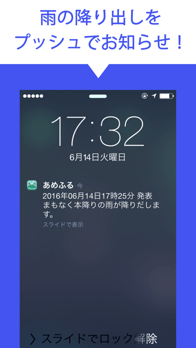 - 雨が降るちょっと前に、リアルタイムでお知らせしてくれるアプリ