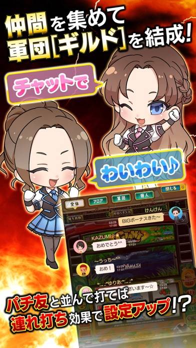 バーチャルホールでほかのプレイヤーとも一緒に遊べます。隣の席で仲良くパチンコを打ったり、気の合う仲間とギルドを作ったりと、コミュニケーション要素も満載です。ホールを共有するため、設定看破やハイエナといった駆け引きも味わえますよ。