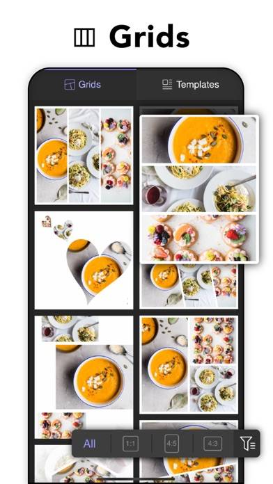 「グリッド」または「テンプレート」から好きなデザインをタップします。「PLUS」表記があるものは月額課金が必要なため、それ以外のものを選びましょう。