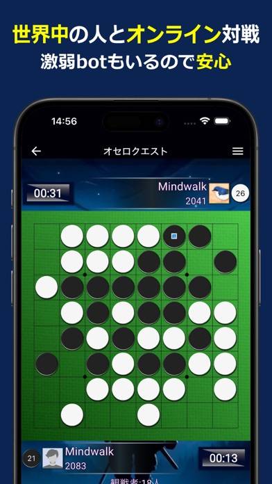 気軽に他人とオセロのオンライン対戦ができる。1分対局か5分対局か選べて、電車移動などのスキマ時間にさくっとできるのが有難い。