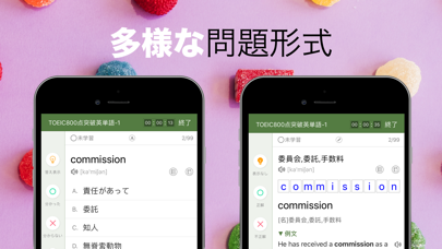 TOEICで出題される、重要な英単語を収録した英単語学習アプリ。ハイスコアの獲得に特化しているのが特徴です。問題は選択式になっていて、間違えた単語は忘れた頃にもう一度出題。脳のメカニズムを利用して、効果的に暗記ができます。