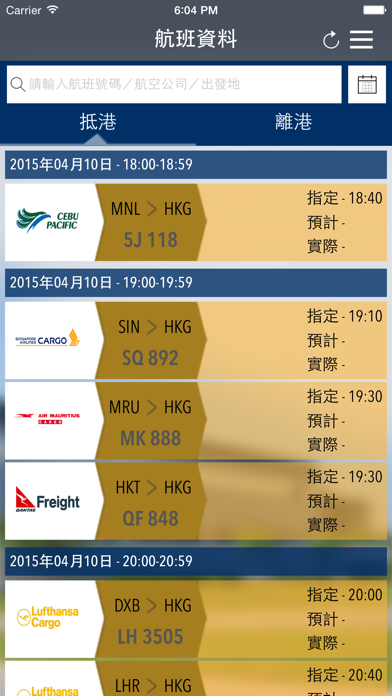 - 前後3日間の香港国際空港の貨物・フライト情報を一覧でチェックできる