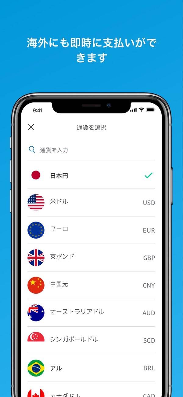 面倒な手続きなくクレジットカードのように支払いできる決済アプリ。海外の業者から商品を購入する場合でも、安心して手続きできるようになります。取引履歴も残るので、アプリで手軽に管理できるのがポイント。海外の商品でも気軽なお買い物ができるようになります。