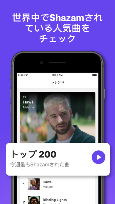 - 画面をタップするだけで曲を認識。周囲の音楽にもヘッドホンの中の音にも対応