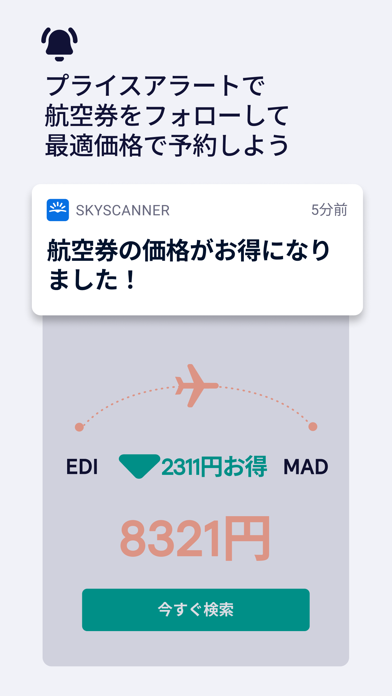 本アプリでは国内外の航空会社の航空券から最安値を検索できます。さまざまな航空会社の料金を比較してお得な航空券情報を見つけることが可能です。