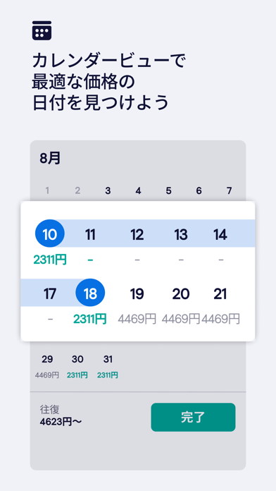 - カレンダビューで日ごとの最安値をひと目で確認できる