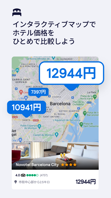- 価格や評価・施設タイプなどの条件を絞り込んでホテルの予約も可能