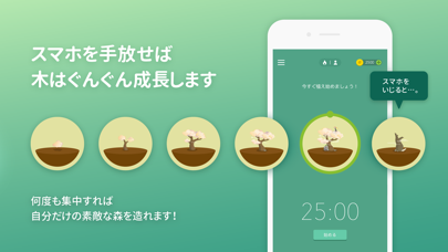 - 集中した時間に応じてコインをGET。新しい樹木をアンロックしよう