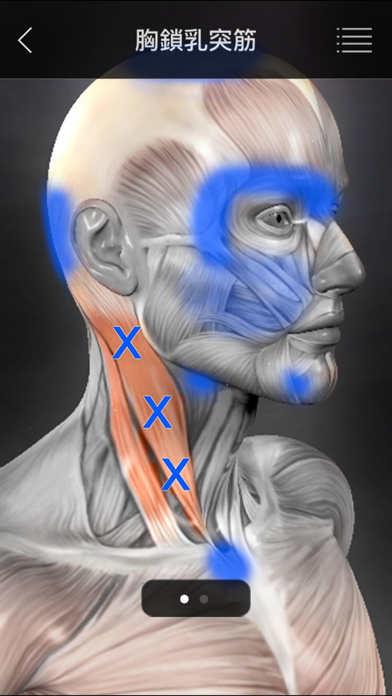 筋肉のトリガーポイントと関連痛のパターンを体の部位別に確認できるアプリです。70種類以上の筋肉に対応した関連痛の位置や特徴を図解と文章でわかりやすく表示。トリガーポイントを学んでおくことで、触診する際に効果的なアプローチを選びやすくなります。リハビリや整体の知識を学びたい人におすすめなアプリです。