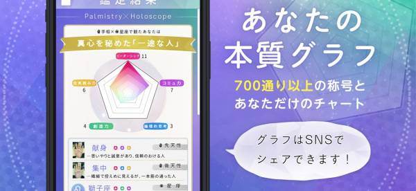- 手相と星座を組み合わせて、本当の自分を診断してくれる占いアプリ