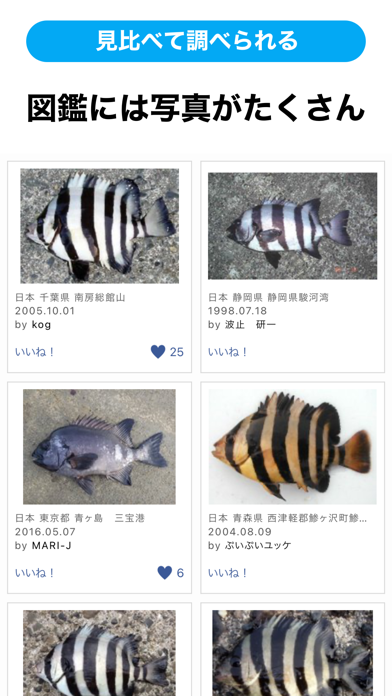 画像認識で魚の名前を調べられる魚図鑑アプリ。日本産の魚6,000種類から判断してくれて、それぞれの情報も見られます。調べてもわからないものは質問をしてユーザーからの回答を得られます。魚図鑑もついており、図鑑からも魚の情報を閲覧可能。