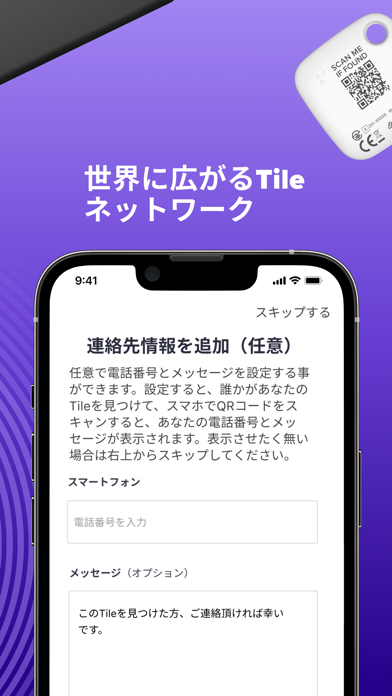 Bluetoothの届かない範囲であっても、見つけた人が連絡できる手段があります。スマホで連絡先情報を追加しておくだけで、QRコードを介して連絡が可能。これにより、あなたの大切な物が見つかる確率が格段に上がります。