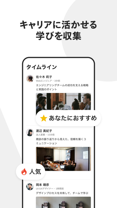 転職活動に役立つ Wantedlyのアプリ版。自分の経歴や目標をしっかりアピールでき、応募前に実際の企業へ話を聞きに行くことも可能です。エントリーから担当者とのやりとりまでをスマホで完結できるように設計されているので、スムーズに転職活動ができるサービスと評判。