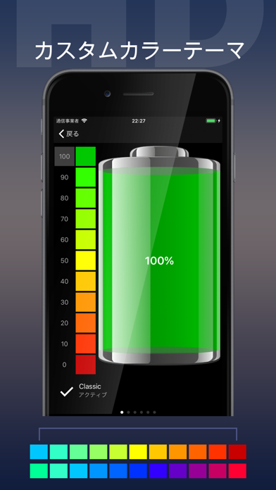 充電完了までの残り時間、バッテリーが切れるまでの時間が表示されるモニターアプリ。こだわりを感じるデザインが特徴的で、なおかつ画面の色合いを自分でカスタマイズできます。