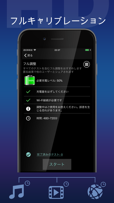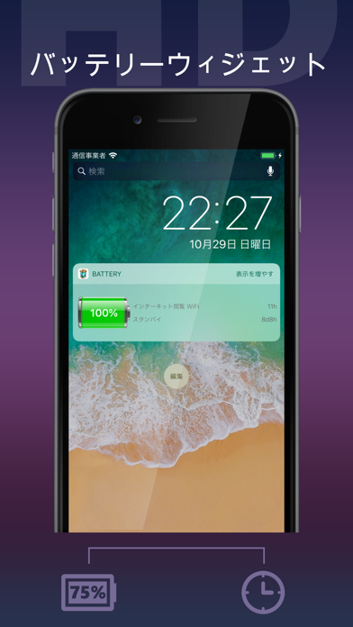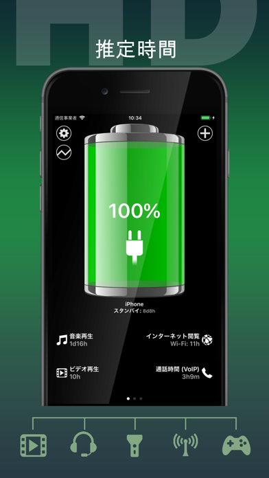 - 音楽・ビデオ・通話・ネット接続など使用可能時間を細かく表示