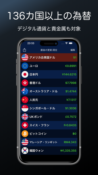 130種類以上の通貨に対応し、世界中の為替情報がリアルタイムで見られるアプリ。貴金属価格やビットコインにも対応しており、出張先でもさっと確認できます。測定単位の変換やメモ機能もあり、海外でのビジネスを幅広くサポートしてくれますよ。
