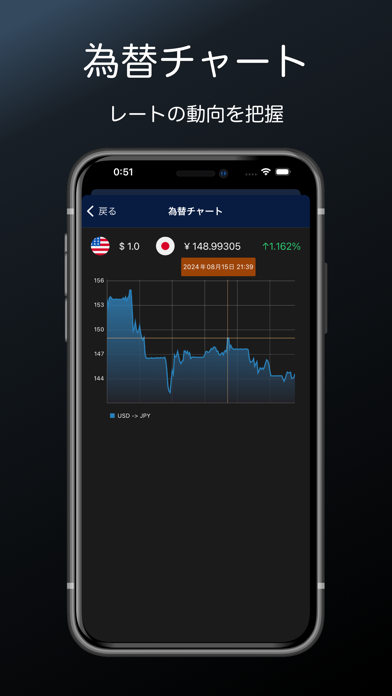 為替レートは常時リアルタイムで更新され、急なレート変動にもすばやく気づけます。ビットコインなどのデジタル通貨にも対応しており、国を問わずレートの動きをしっかりと捉えられます。価格のグラフ表示もあるので、トレンドの把握にも役立ちますよ。