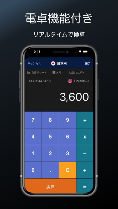 130種類以上の通貨に対応しており、外国に着いたその場でスムーズに通貨レートを確認できます。トップ画面には直近の為替情報がリアルタイム表示されるため、タップするだけで知りたい国のレートをすぐにチェック可能。外貨での買い物時にも、正確な金額感覚がつかみやすくなります。