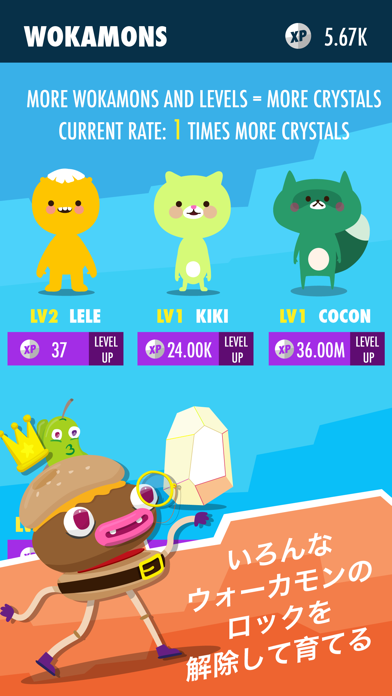 歩数を経験値としてキャラが成長する仕組みです。キャラがレベルアップするほどに、多くの報酬が手に入ります。歩数による経験値を一定数溜めることで、新しいキャラを仲間にすることが可能。キャラに好きな名前をつけて、コレクションしてみましょう。