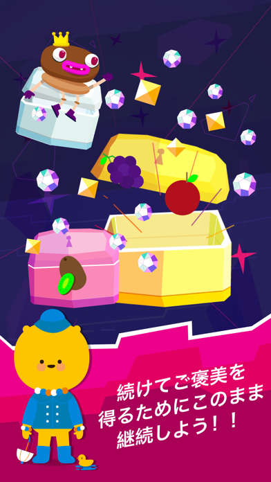 - 食べ物がなくて困っているキャラを、たくさん歩いて救ってあげよう