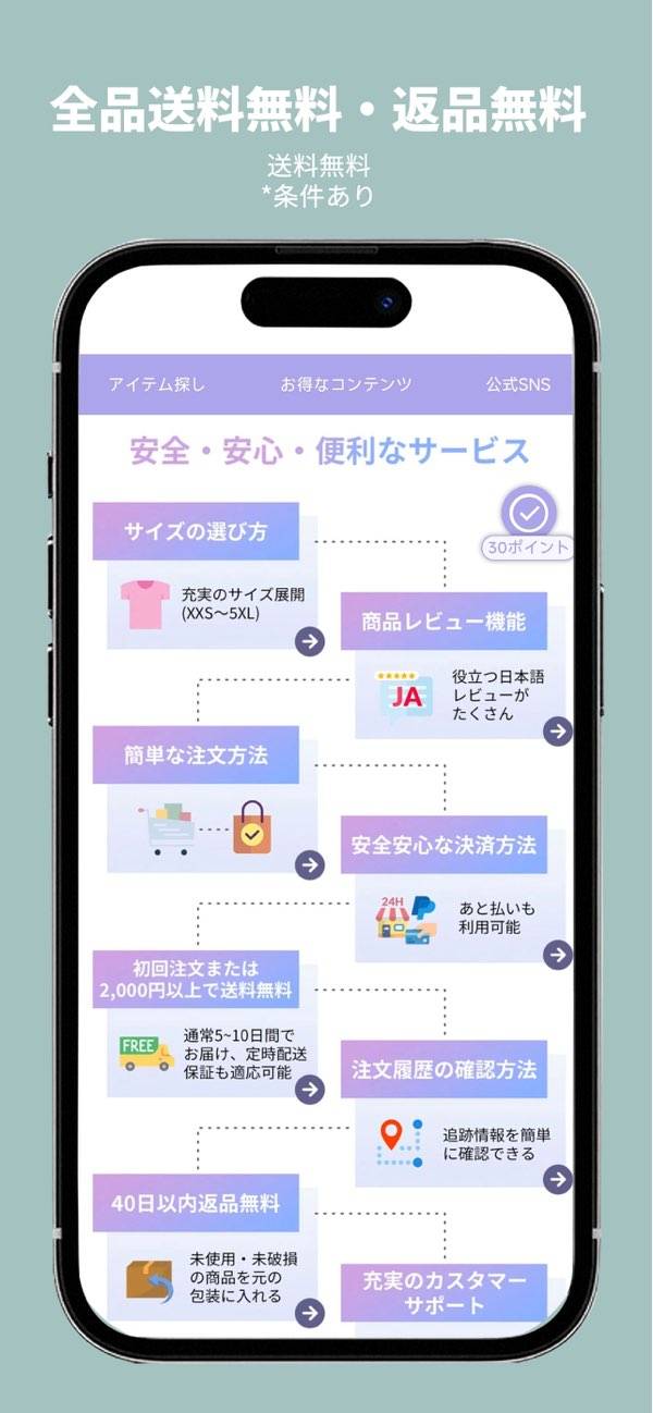 返品無料など、サポート体制もしっかりしているので安心してお買い物ができます。