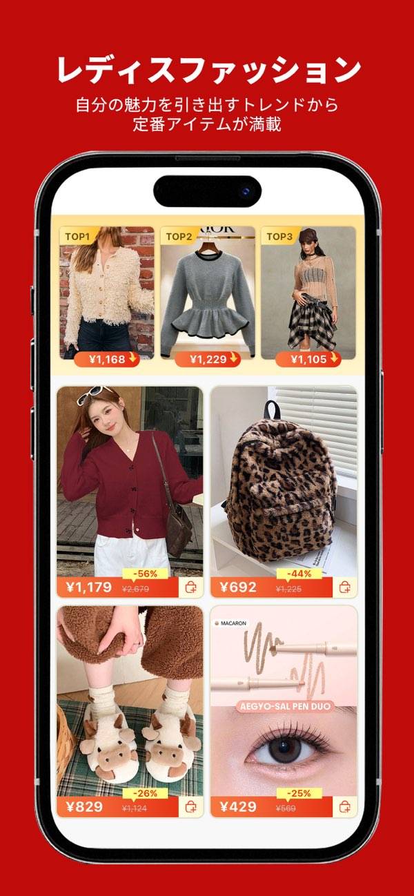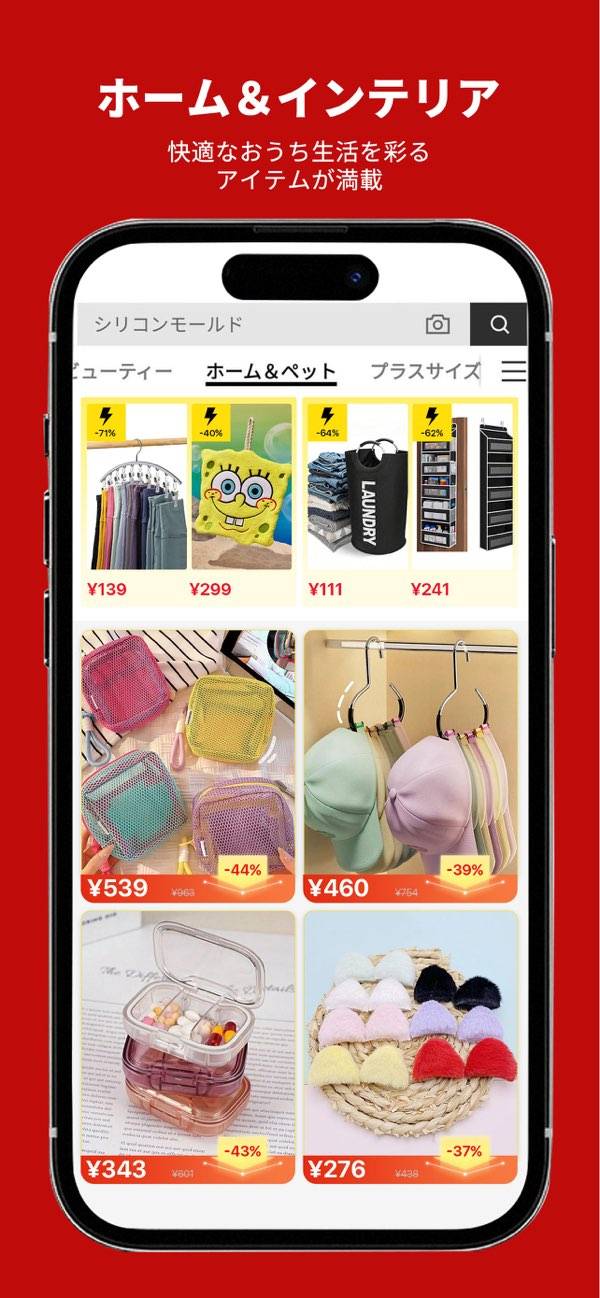 ファッションから電子機器やオフィス用品まで、さまざまなカテゴリーの商品を取り扱い。もちろん激安価格。一つのアプリでさまざまなニーズに応える商品を探せるため、ショッピングの楽しみが広がります。