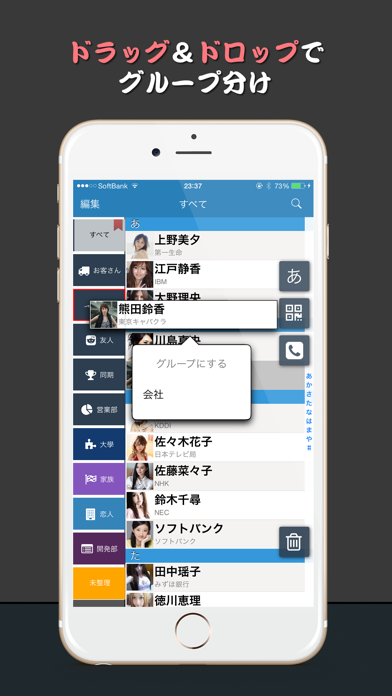 - ドラッグ&ドロップでグループ分け。直感的に使える連絡帳アプリ