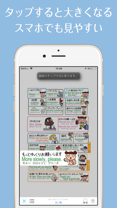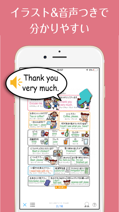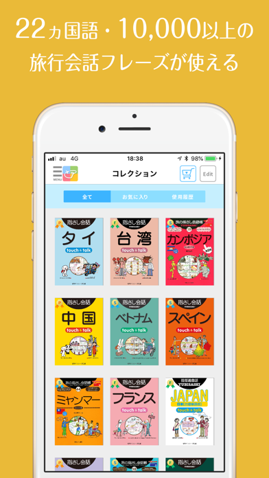 フレーズをタップすると読み上げてくれる機能が魅力。ネイティブの発音を何度でも再生できるので、現地の人とスムーズにコミュニケーションを取ることができます。語学学習にも役立つでしょう。