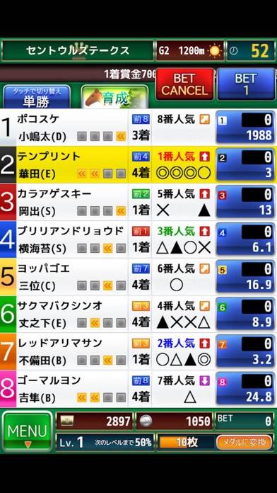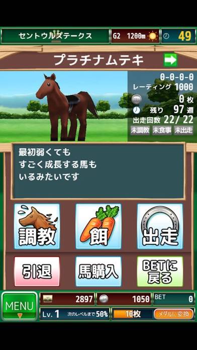 ゲームセンターでよくある、メダルを使った競馬ゲームを遊べるアプリ。客としてベットに参加できるのはもちろん、馬主として好きな馬を育てる事も可能です。また対戦モードもあり、ボリュームはなかなかのものですよ。