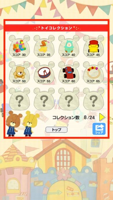 散らばったおもちゃを、ペア同士で集めていく簡単ゲーム。ペアでタップするとおもちゃが消えるので、制限時間までにどれだけ片付けられるかチャレンジしましょう。