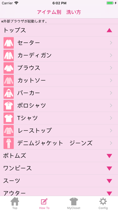 - 自分の服を写真と一緒に登録して、いつでもすぐ洗い方を見られる