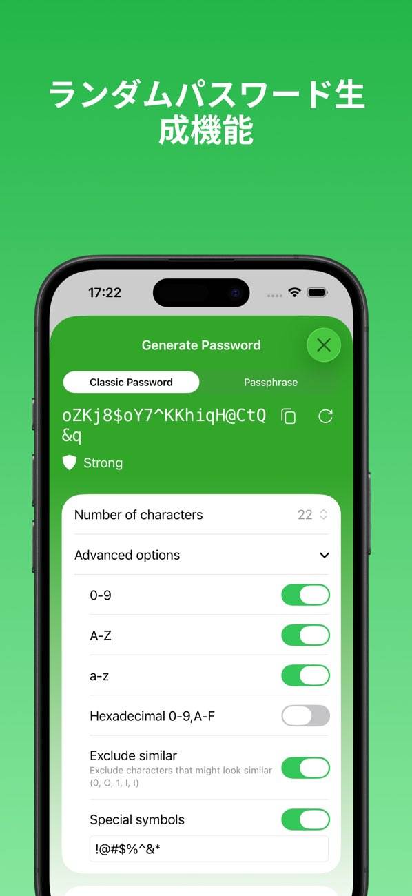 一元管理しているパスワードは、ワンタップログインができ、自動保存も可能。頻繁に使うパスワードはピン留めすることで、さらに使いやすさを追求しています。また、パスワード生成機能を使って強力で推測されにくいパスワードを各サイトに設定可能です。