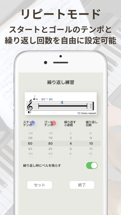 - 振り子式のアニメーションでリズムを刻むメトロノームアプリ