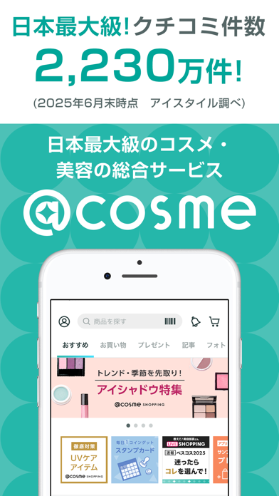 - おすすめのコスメ・美容情報が掲載された「@cosme」公式アプリ