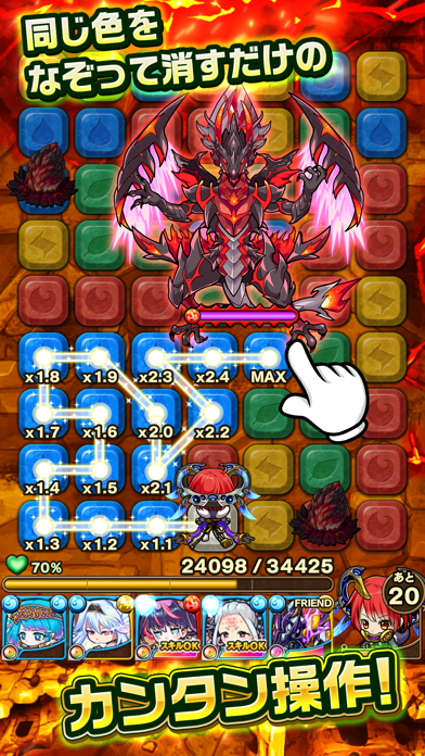 同じ色をつなげて攻撃!操作もしやすく、何よりキャラが可愛い(・o < )コラボの時とかメッチャ可愛い!育成要素があるから、様々な面でやり込めます。