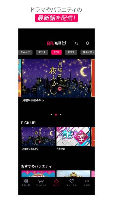 まさかの日テレの番組が無料で見れてしまうアプリ!ドラマ・映画・アニメなど放送終了の名作が豊富に放送してるので、いつ起動しても満足させてくれる。予定のない休日にはもってこいです!