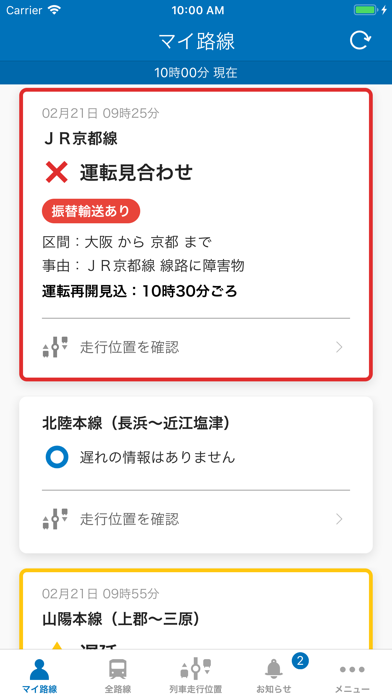 「遅延が発生しています」登録した区間の運行状況を教えてもらおう
