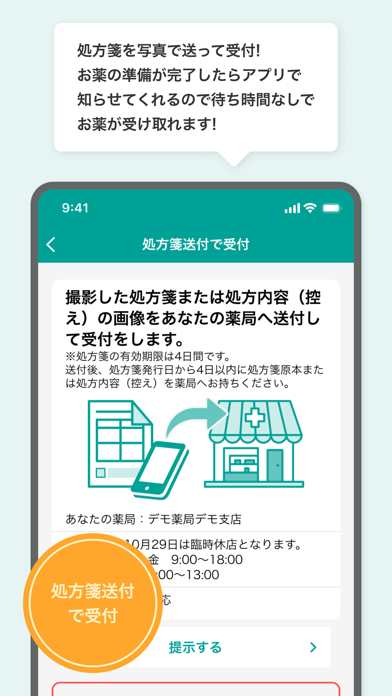 - 処方せんを事前に提出。通知が届き、好きな時間に薬を受け取れる
