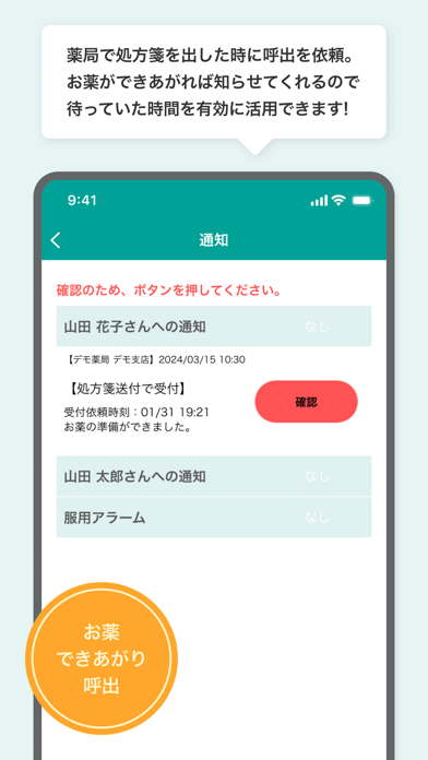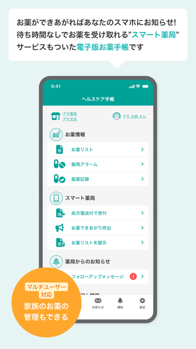 - 時間帯ごとに服用アラームを設定し、薬の飲み忘れを防げる