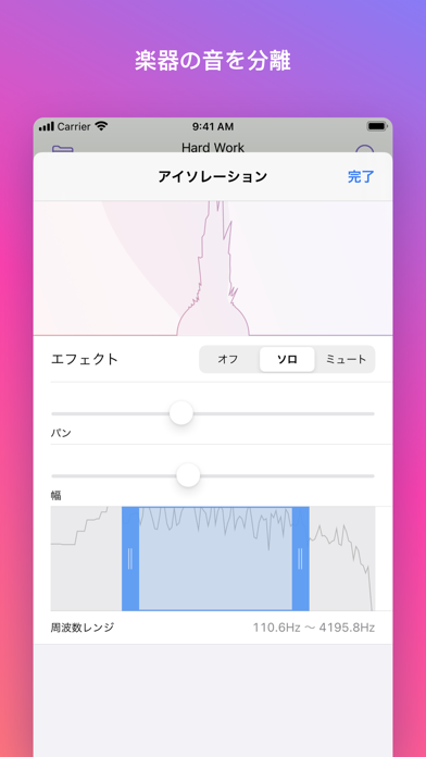 - 楽器やボーカル音を自在に分離。練習したいパートに集中できる