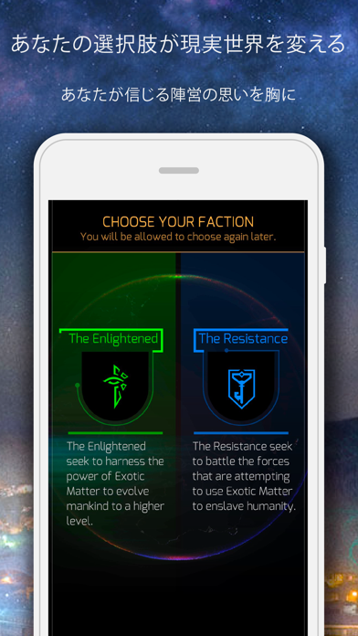 - 未知のエネルギーを巡り二つの陣営が対立。どちらにつくかは自由