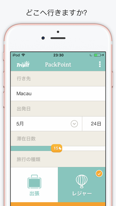 滞在期間や旅行の目的を設定すると、旅行の持ち物リストを作ってくれるアプリ。旅行の目的に合わせた荷物や急な病気のときの薬など、さまざまな観点から荷物をリストアップしてくれます。