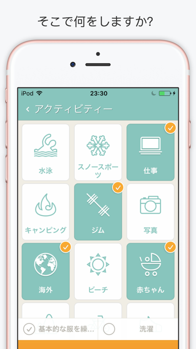 持ち物が多くなる、登山やウインタースポーツにも対応。特に自然を相手にしたアクティビティは、準備不足が命取りになることも。アプリでは各アクティビティで必要な物を教えてくれるので、うっかり忘れを防げます。