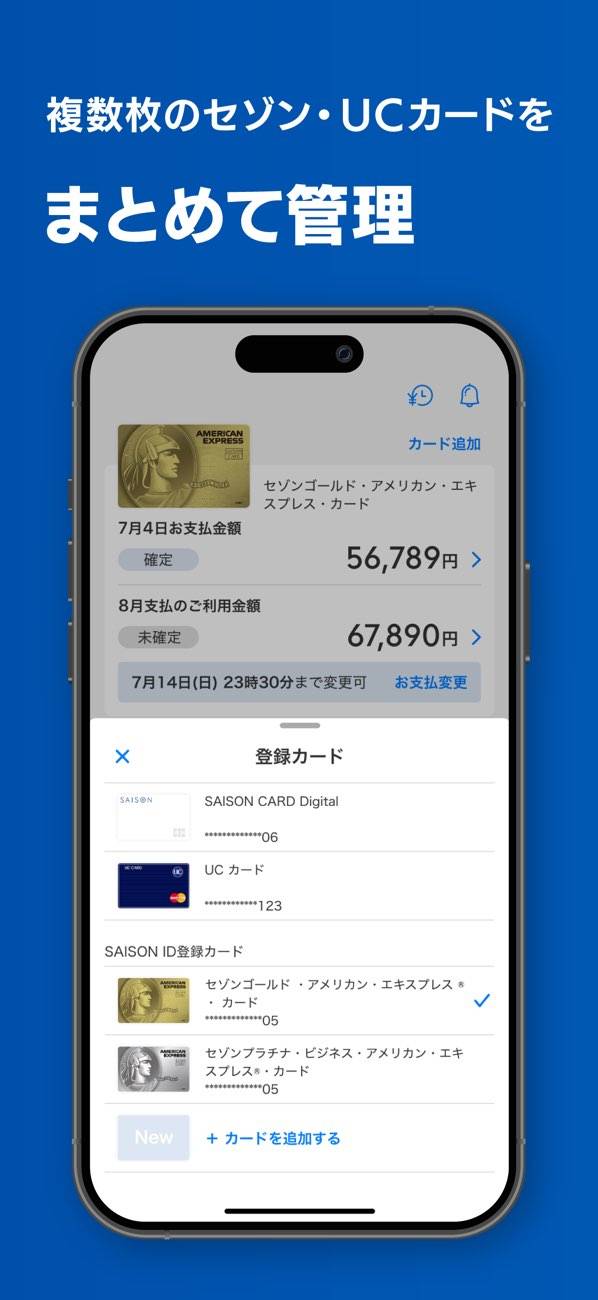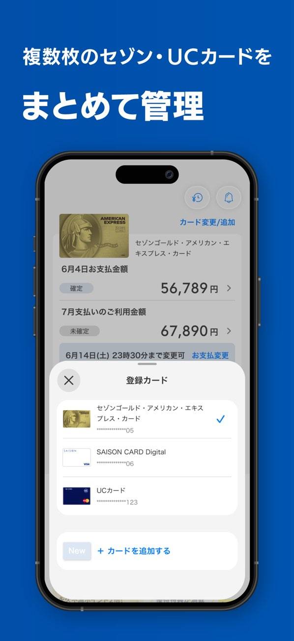 - 複数のセゾンカードとUCカードを管理。効率的なカード利用をサポート