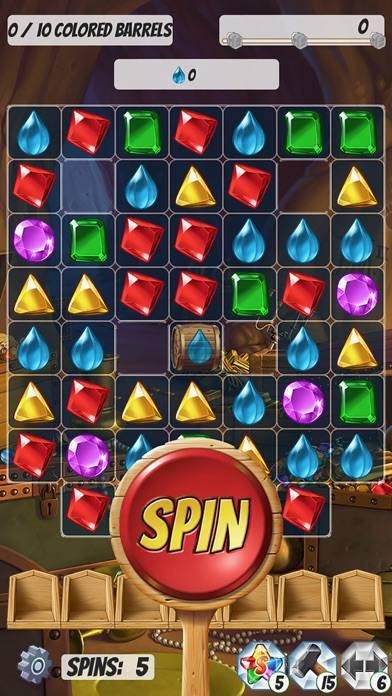- スピンで宝石をドロー。縦列の宝石を入れ替え、同色の宝石を消していく