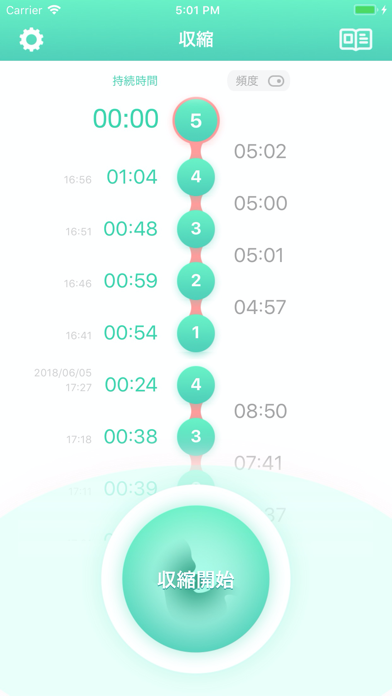 - 開始&終了ボタンをタップするだけでOK。収縮時間を簡単に計測できる