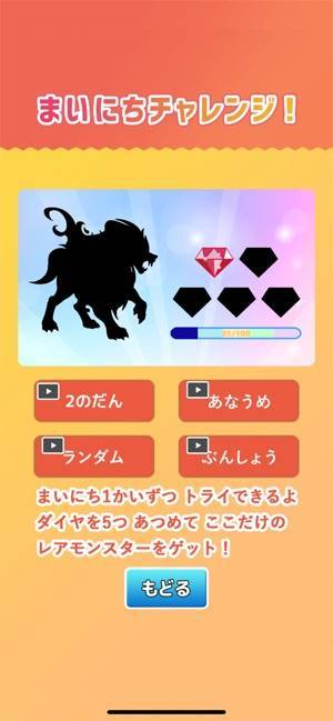 - チャレンジでダイヤを集めて、レアモンスターをゲットできる