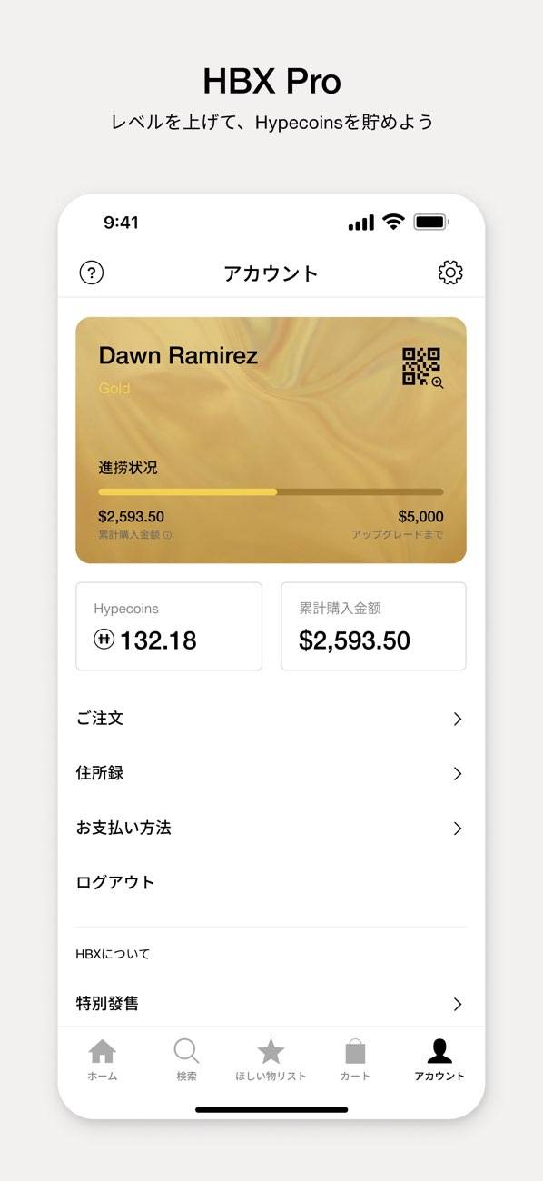 HBX Proの機能を利用すると、アプリ内での購入ごとにポイントを貯めることが可能。そして、貯めたポイントはレベルに応じてさまざまな特典に交換できます。つまり、購入するほどに特典を得られ、よりお得にショッピングを楽しむことができます。