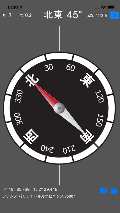 方角が数字で正確に表示される